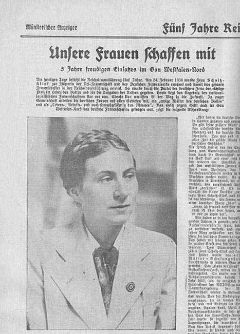 [Below: Newspaper picture of Gertrud Scholtz-Klink. Circa 1939.]