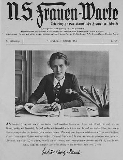[Below: Gertrud Scholtz-Klink on the cover of N.S. Frauen-Warte, 1934.]