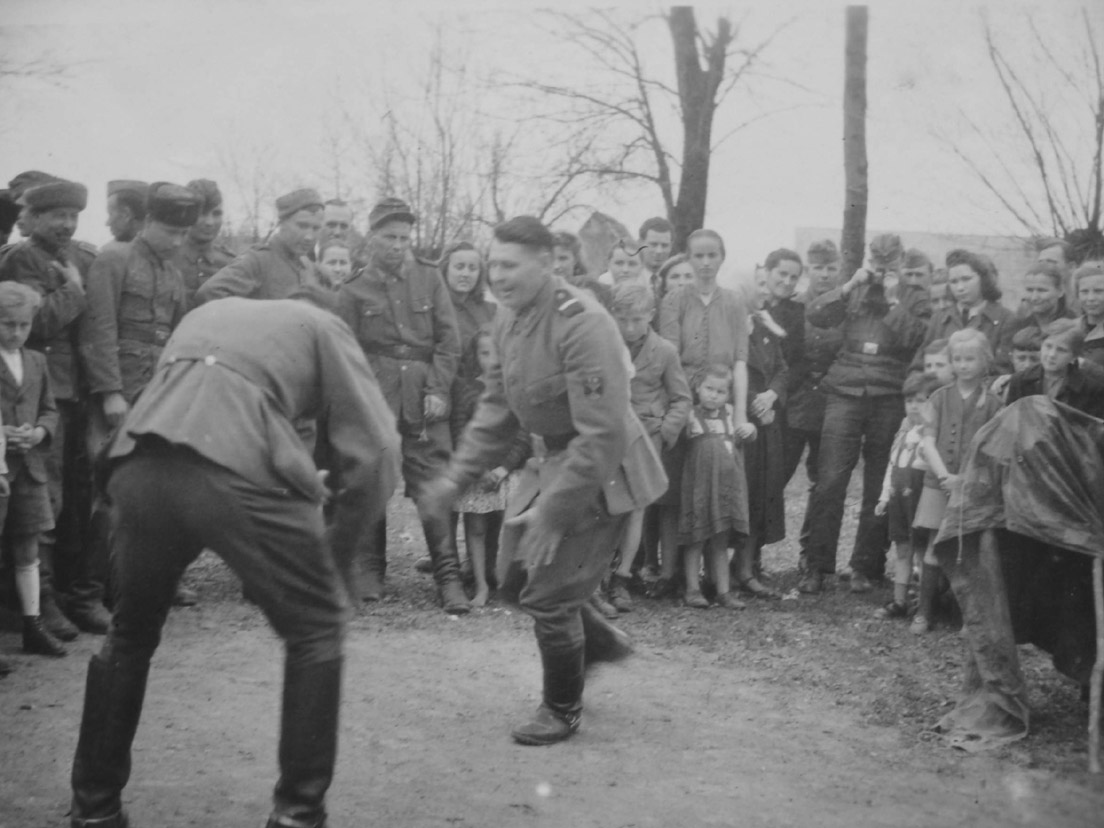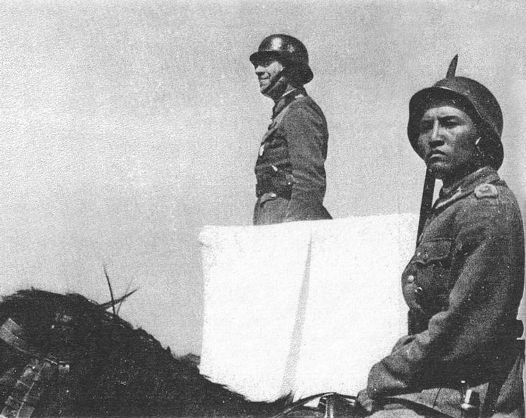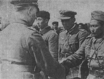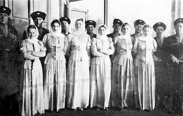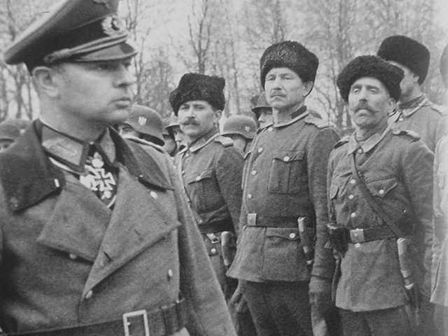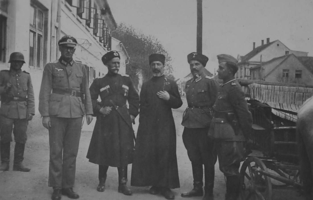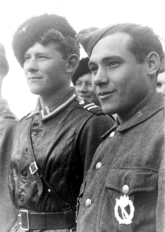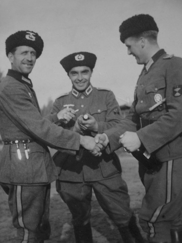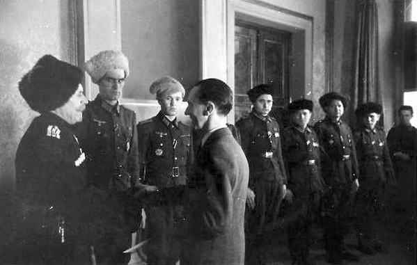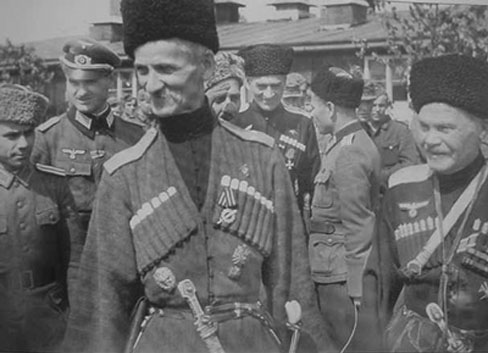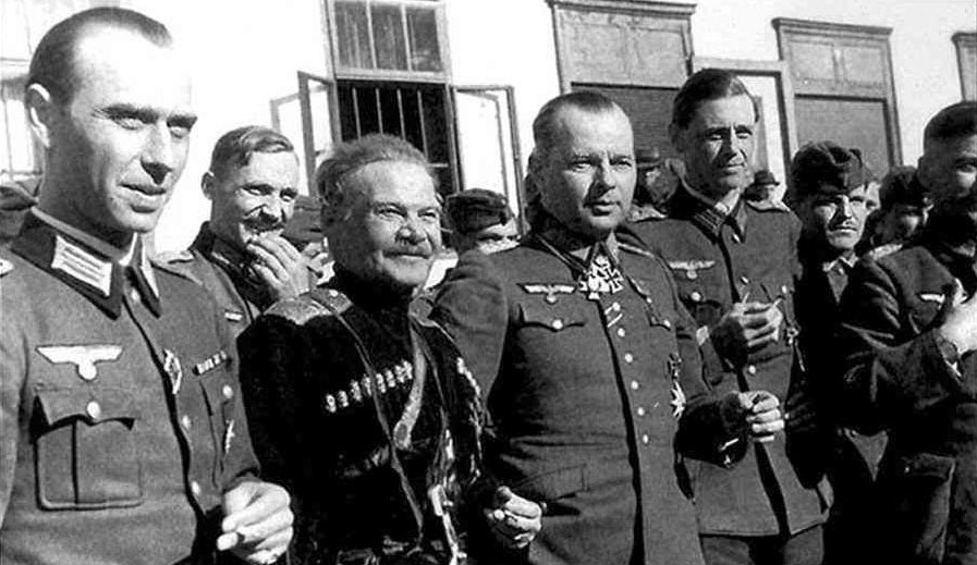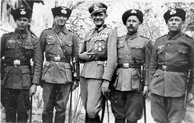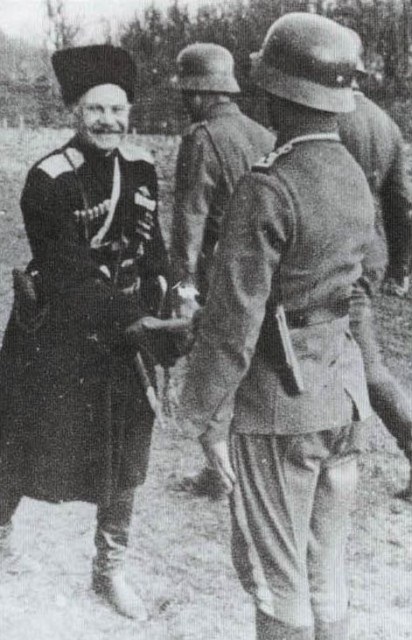 [Above: Cossack volunteers mingling with German Wehrmacht officers.]