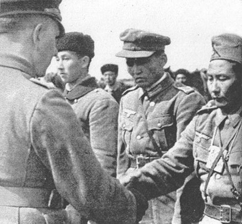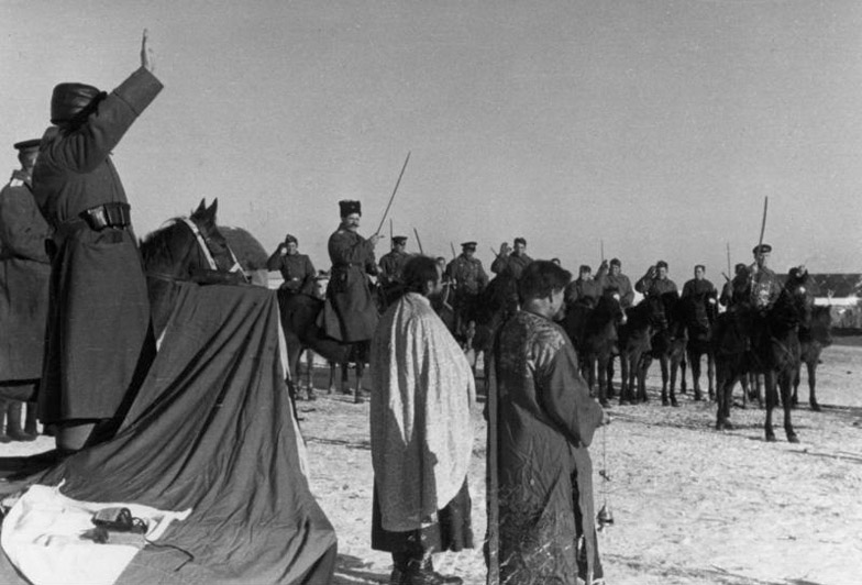 [Above: Generals Shkuro (2nd from left) and von Pannwitz (3rd from left).]