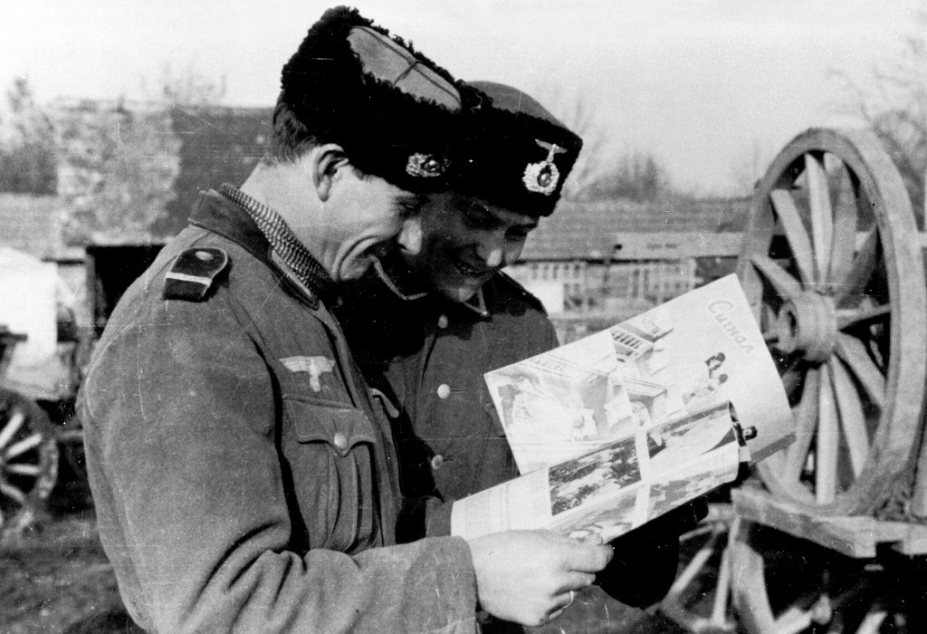 [Above: Two Cossack men enjoy Signal Magazine.]