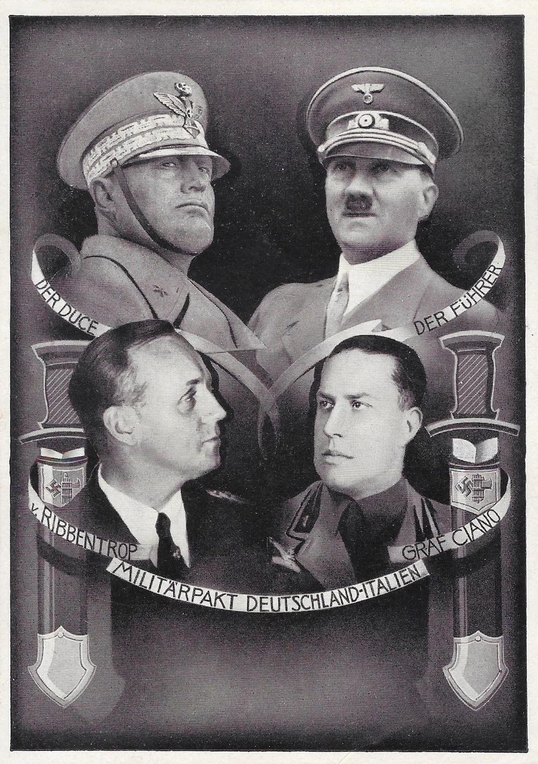 [Above: This postcard celebrates Germany's military pact with Italy...]