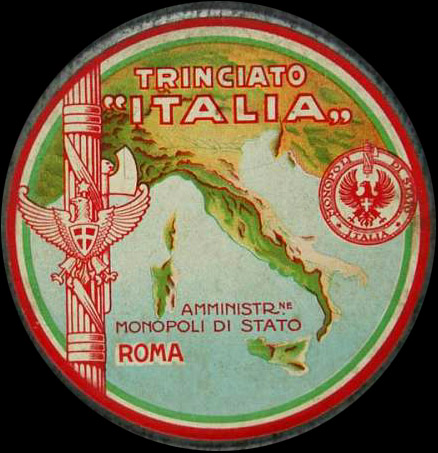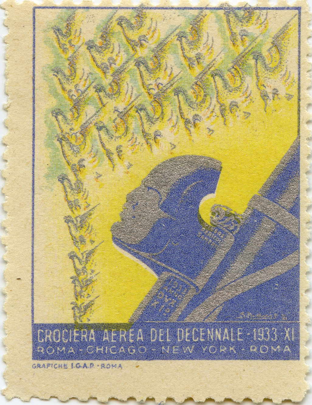 [Above: This advertising stamp (check out Mussolini's face on the blade of the fasces) says: