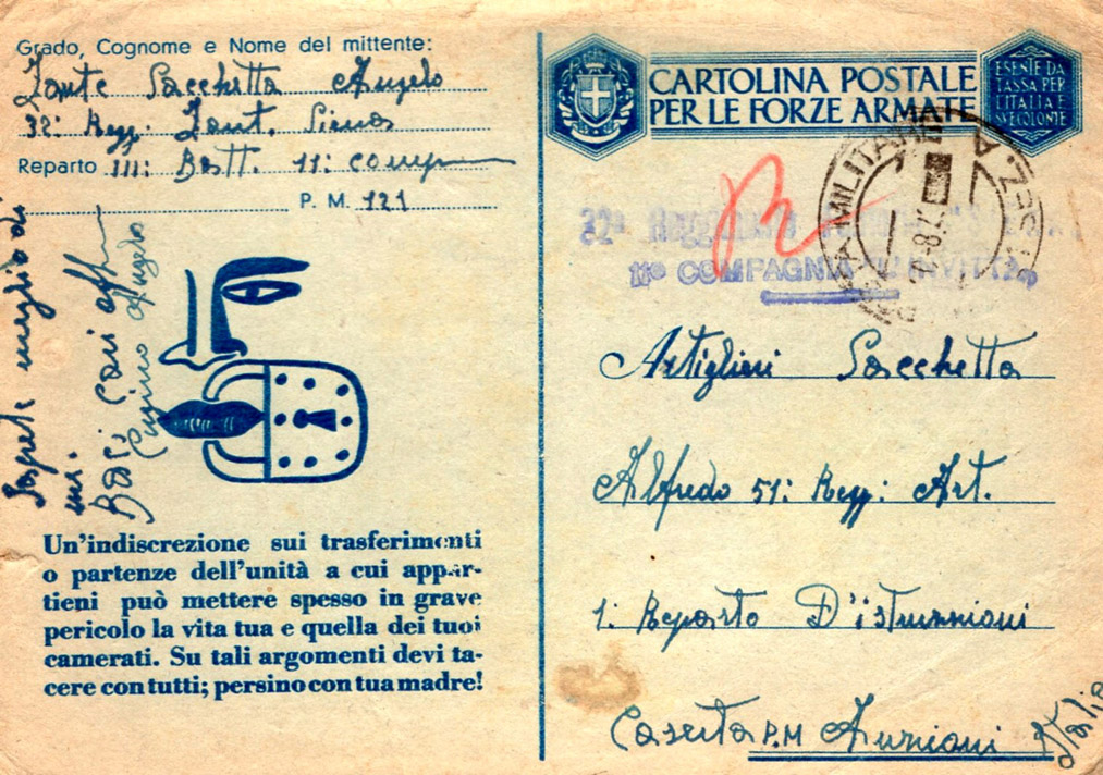 [Above: Italian feldpost postcard with a message regarding keeping your mouth shut!]