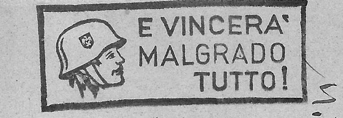 [Above: Italian postal cancel showing a German soldier and the words 'E Vincera' Malgrado Tutto!' = 'And Victorious Despite Everything!']