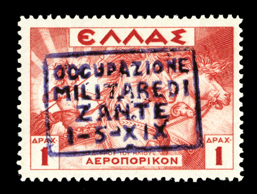 [Above: Another, even rarer Italian Occupation of Ionian Islands (Zante) stamp. This is an Air Post from 1941, of which there are only 5 examples known!]