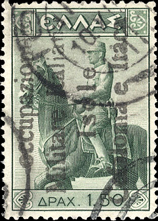 [Above: A nearly identical envelope as that above. This is obviously philatelic (done for collectors). They both have a 'military post' postmark and an original Greek one.]