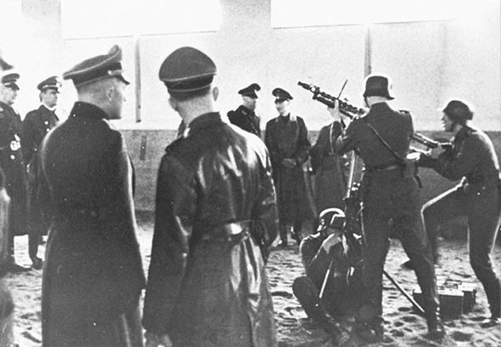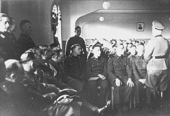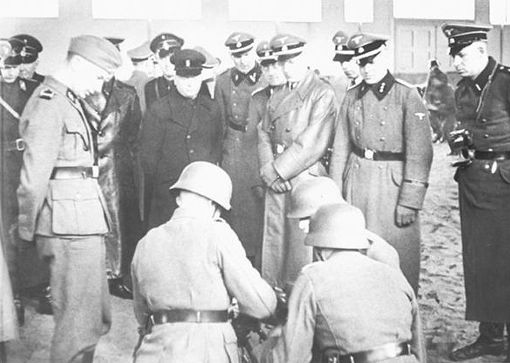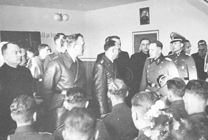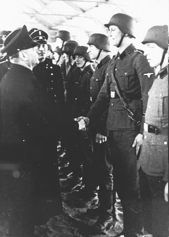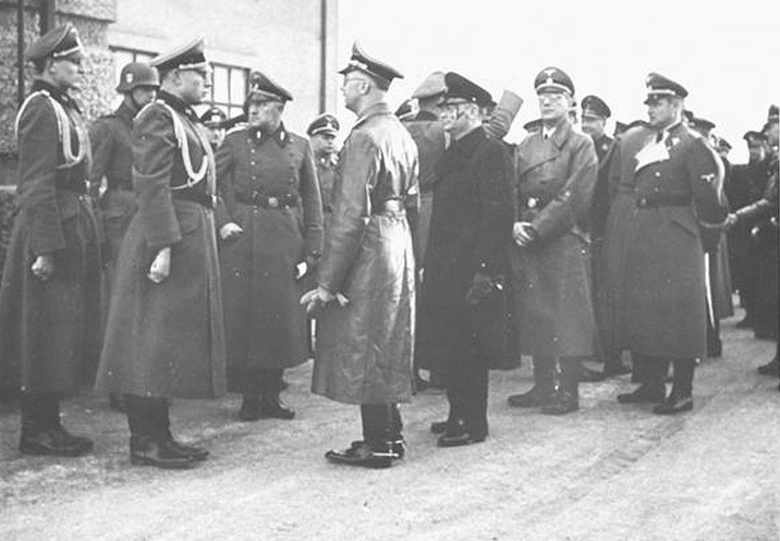 [Below: The following photos, taken January 20, 1941, show Anton Mussert, Seyss Inquart, and Heinrich Himmler during a visit to the barracks of the SS Standarte 'Westland'.]
