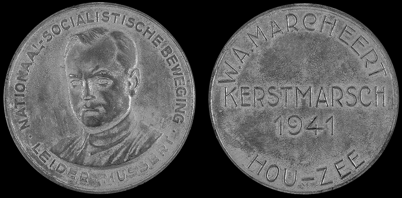 [Below: A medal bearing the image of Mussert. Click to enlarge.]