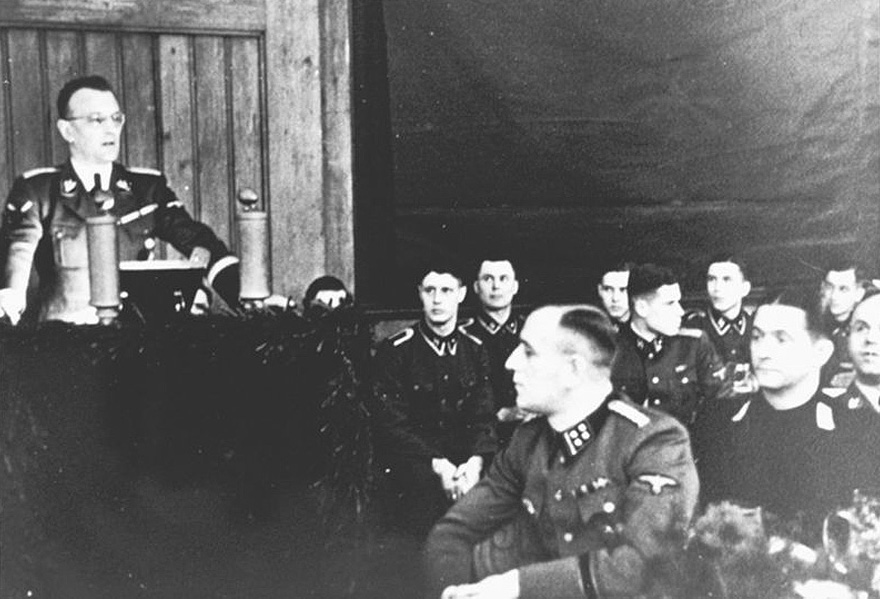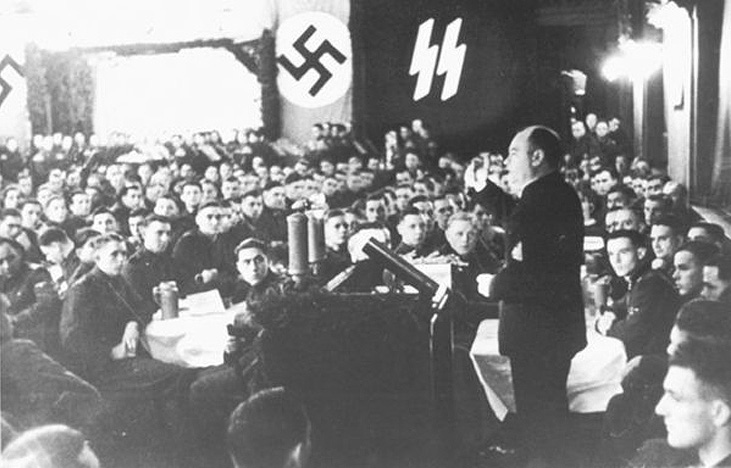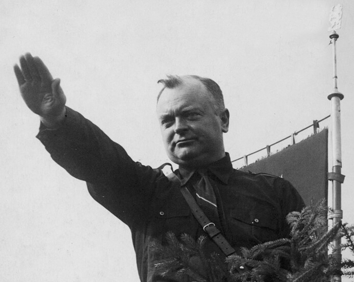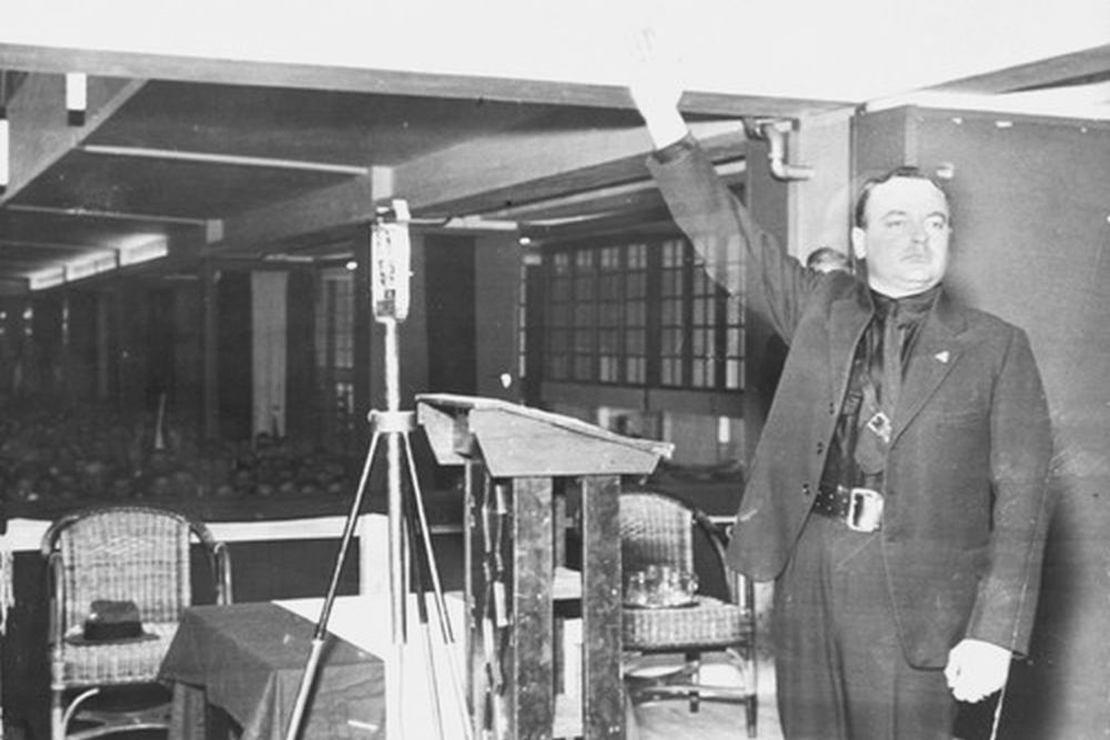 [Below: Anton Mussert during an NSB rally, 1942.]