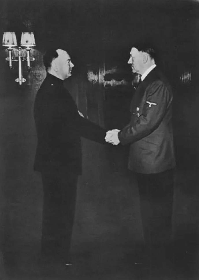[Below: Adolf Hitler and Anton Mussert. A better view of the picture above.]