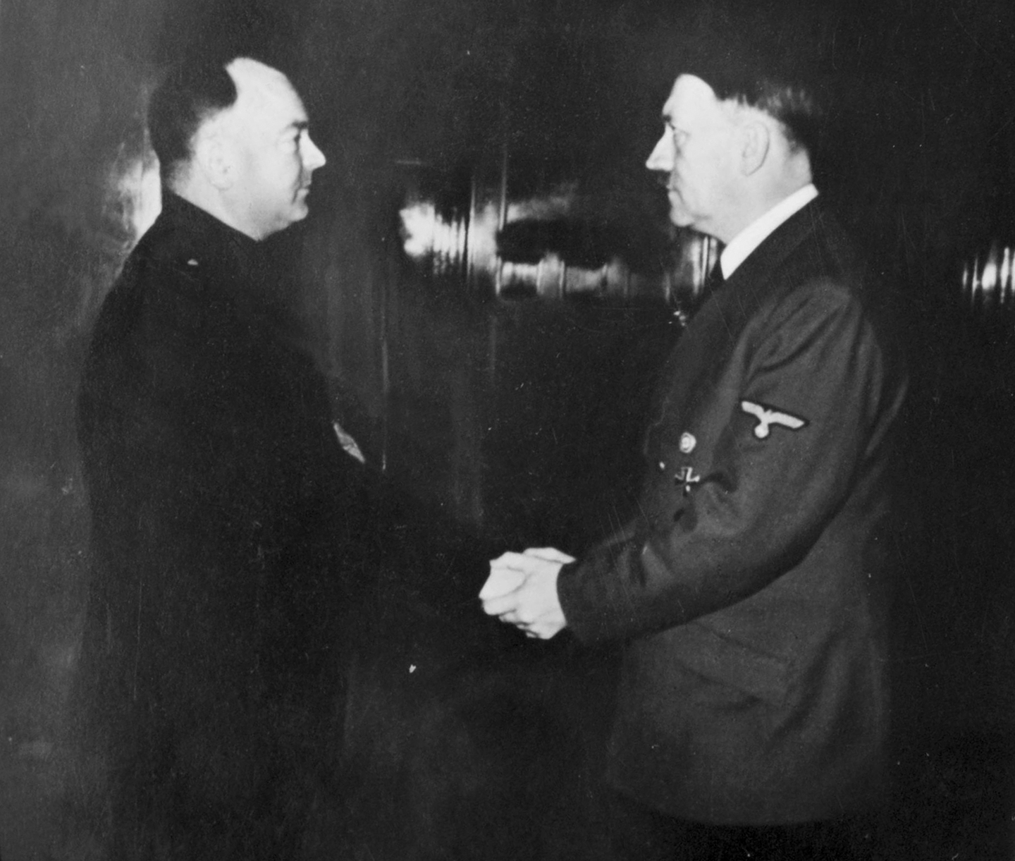 [Below: Adolf Hitler and Anton Mussert. On December 13, 1942 Adolf Hitler declared Mussert 'Leader of the Dutch People'.]