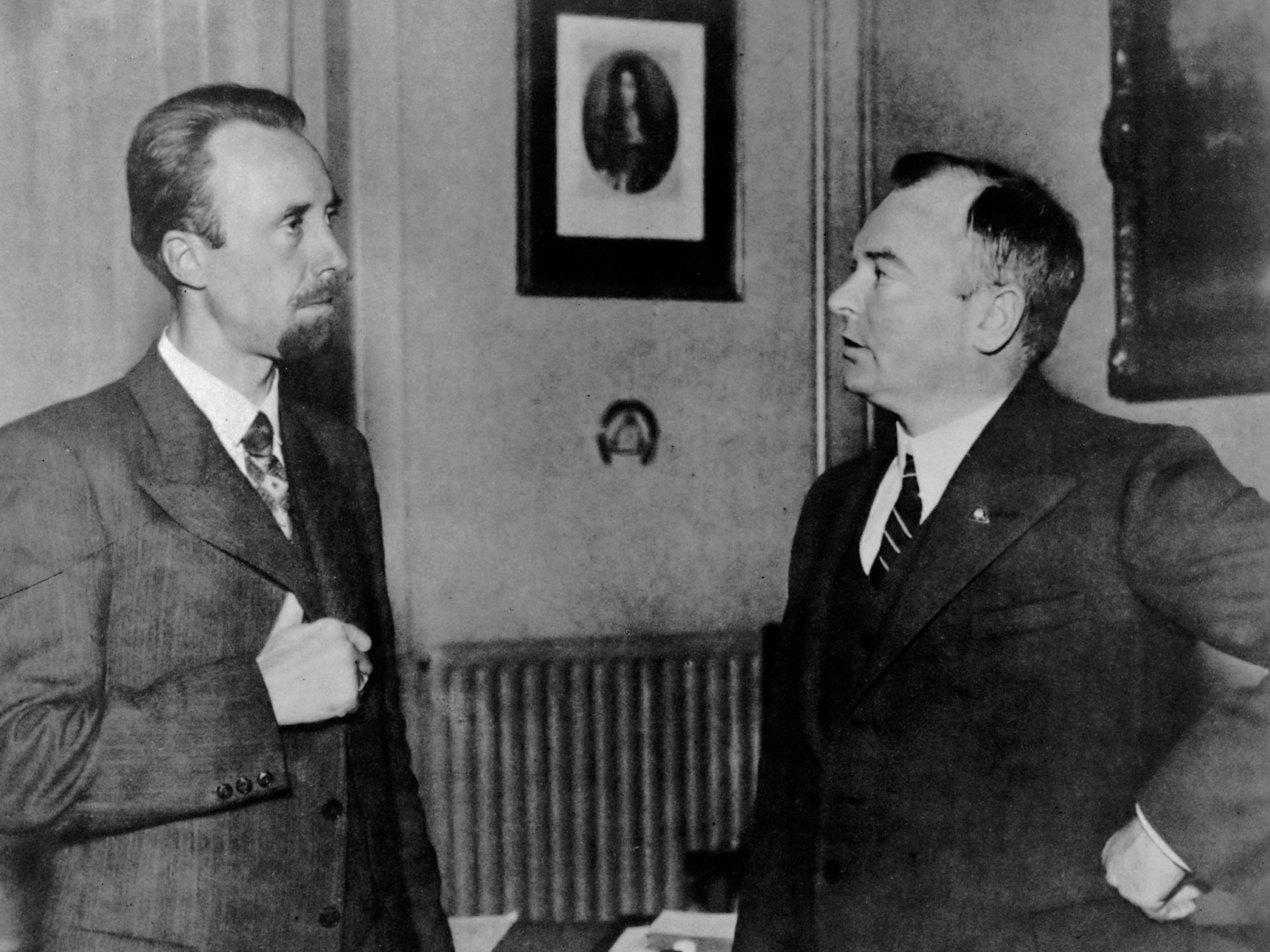 [Below: Anton Mussert and Flor Grammens, a Belgian politician and Flemish activist, 1940. Click to enlarge.]