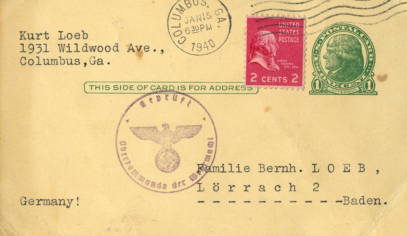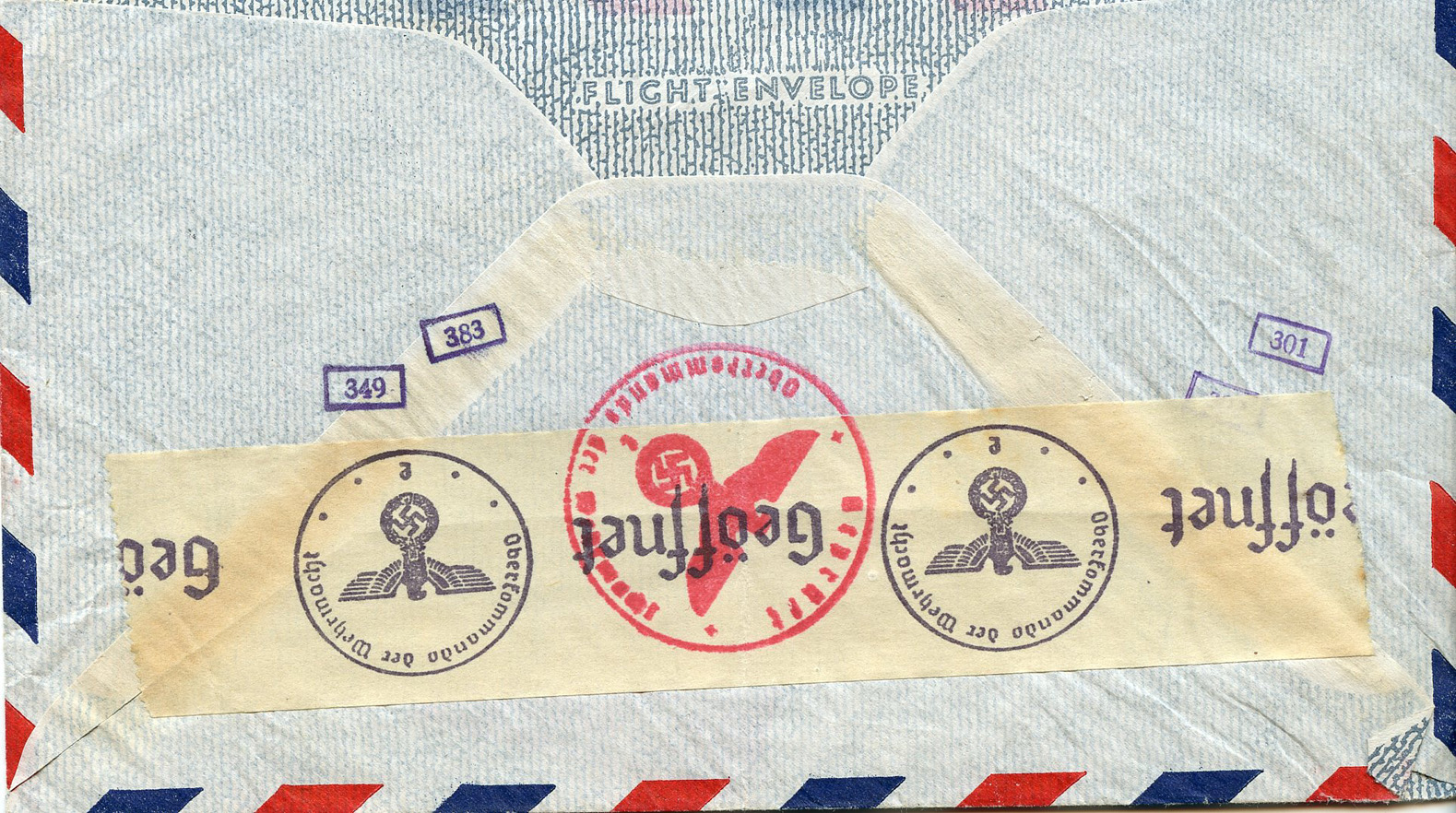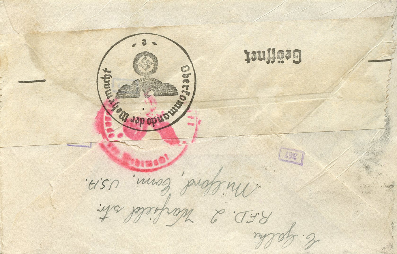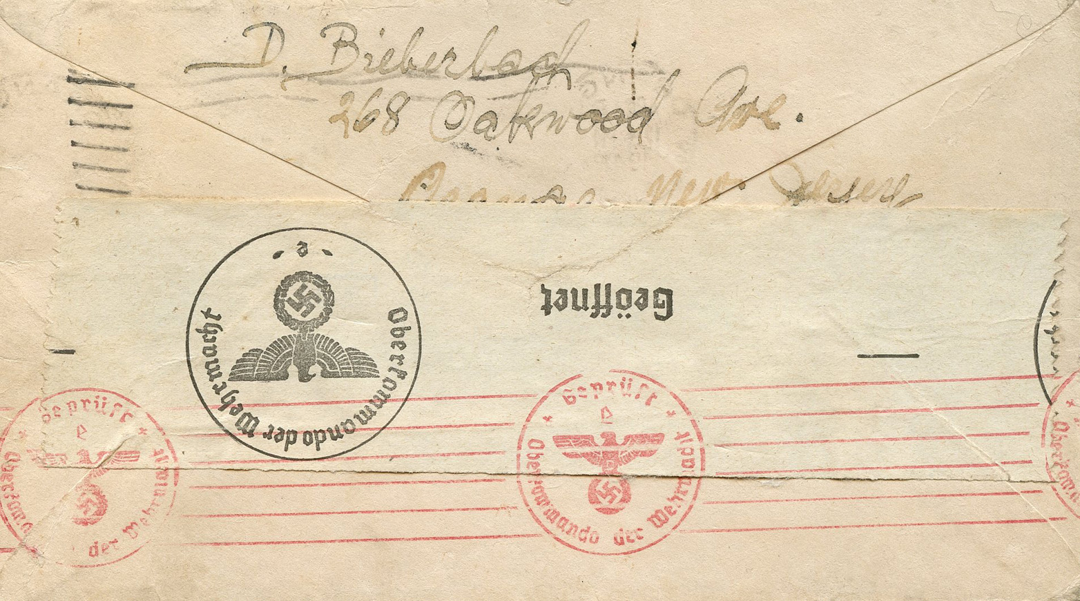 [Below: American envelope canceled on October 17, 1941 and sent to Germany. Front.]