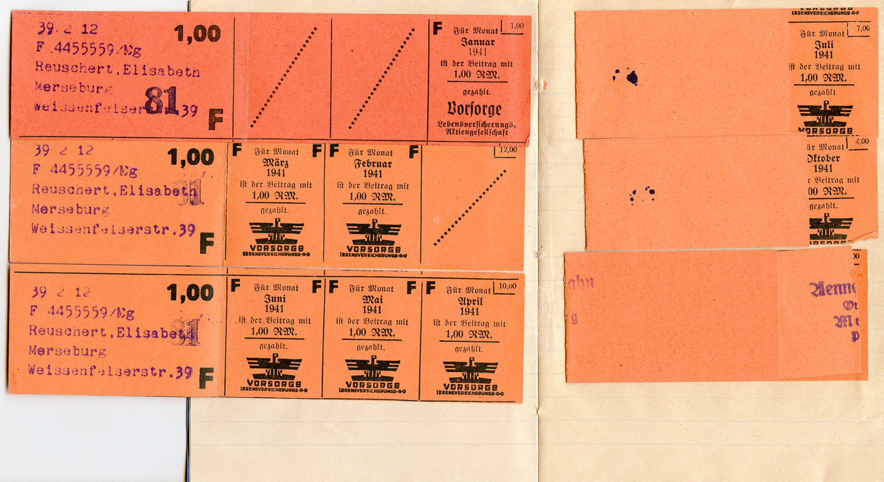 [Below: Many of the stamp strips have ink stamps on reverse. 'Ortsvertreter' just means Local Representative.]