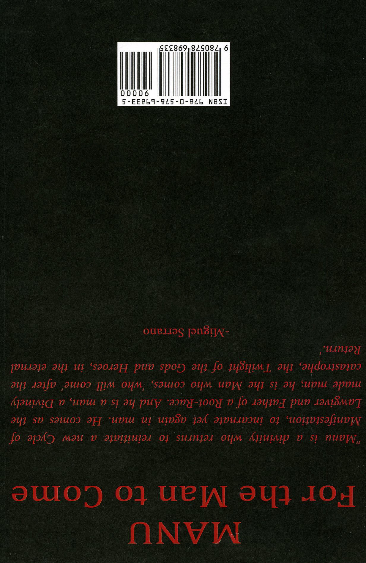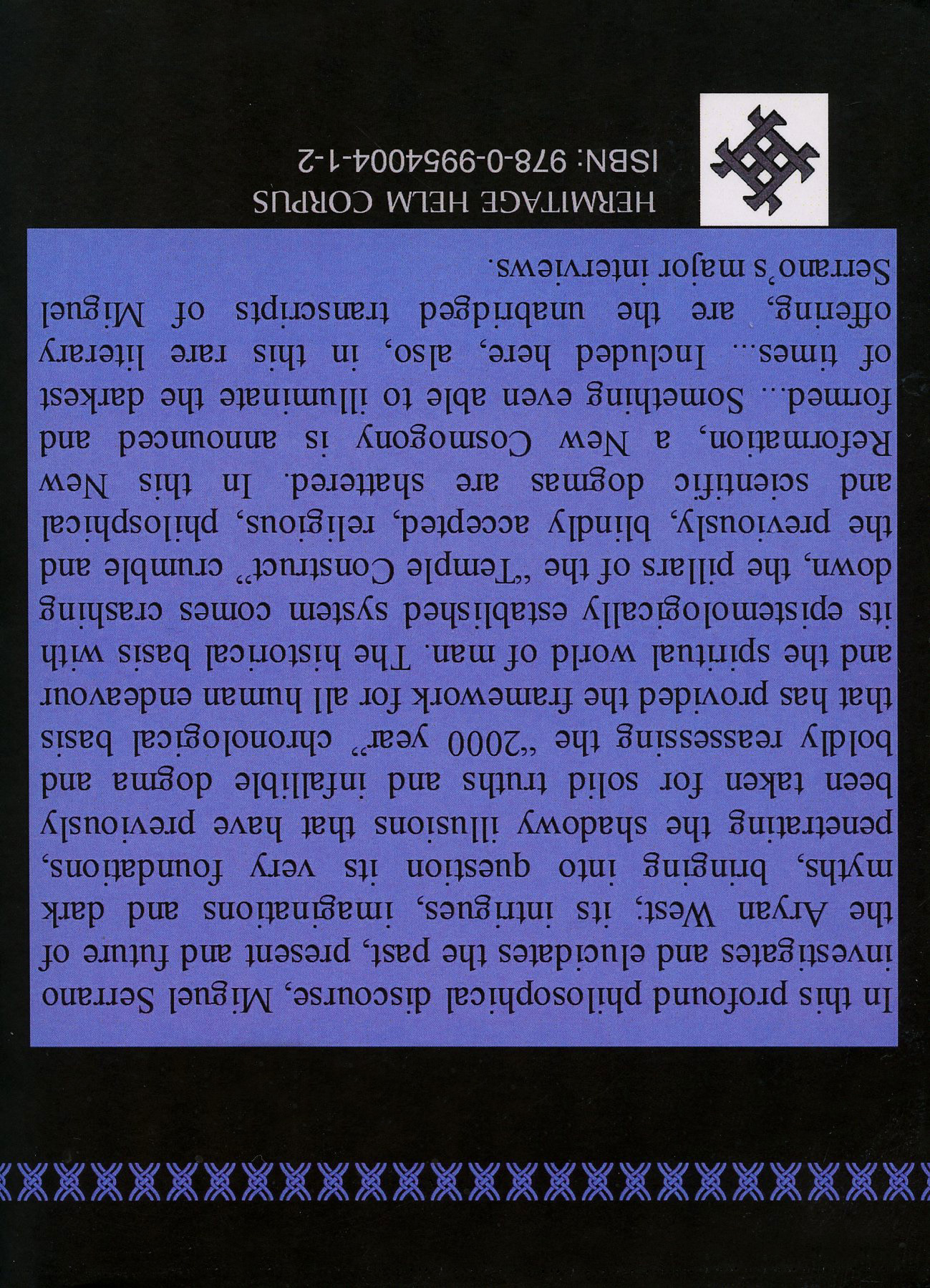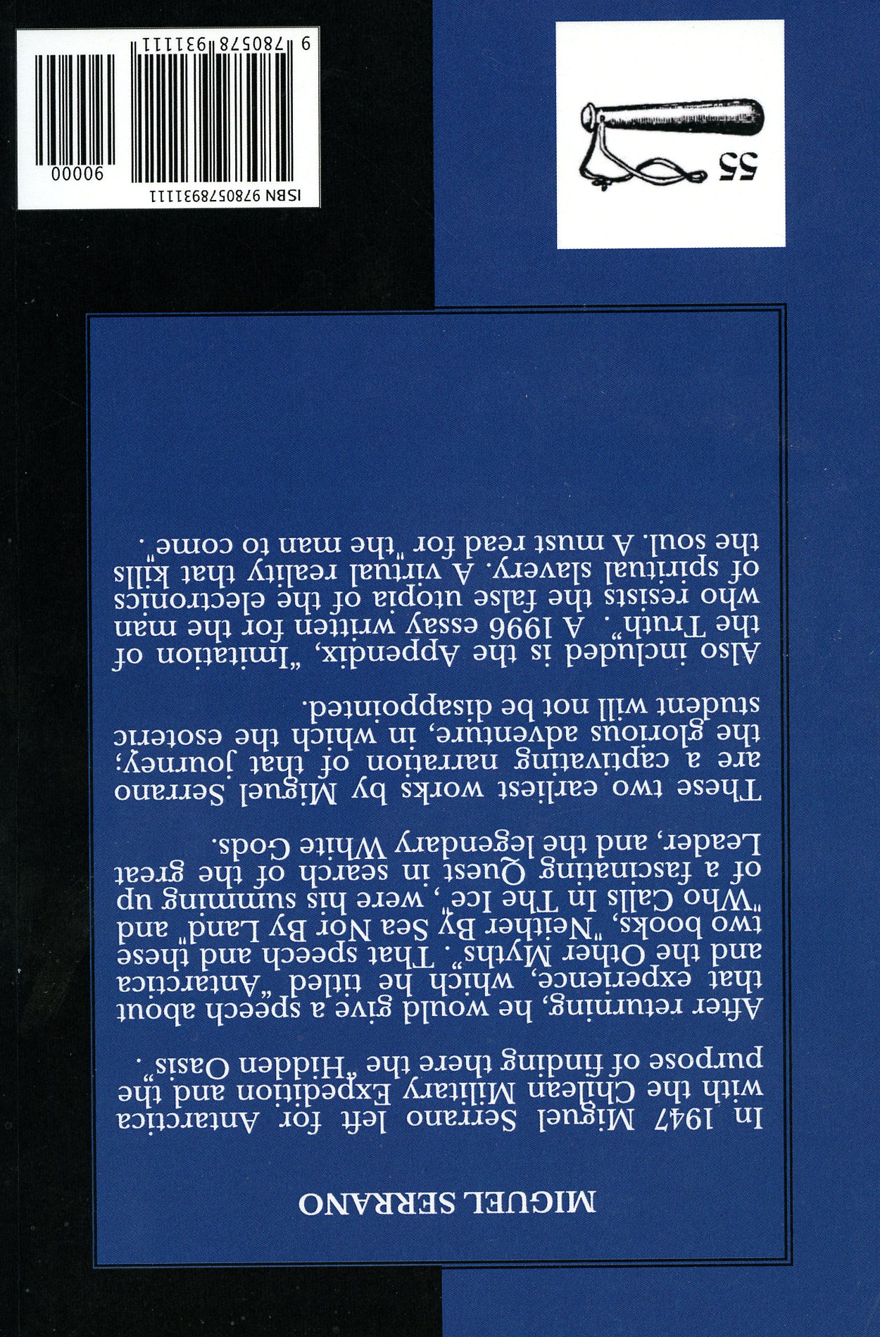 [Below: Miguel Serrano - Collected Essays Volume One. (c) 2013. The Patriot Press. 97 pages. Back. Click to enlarge.]