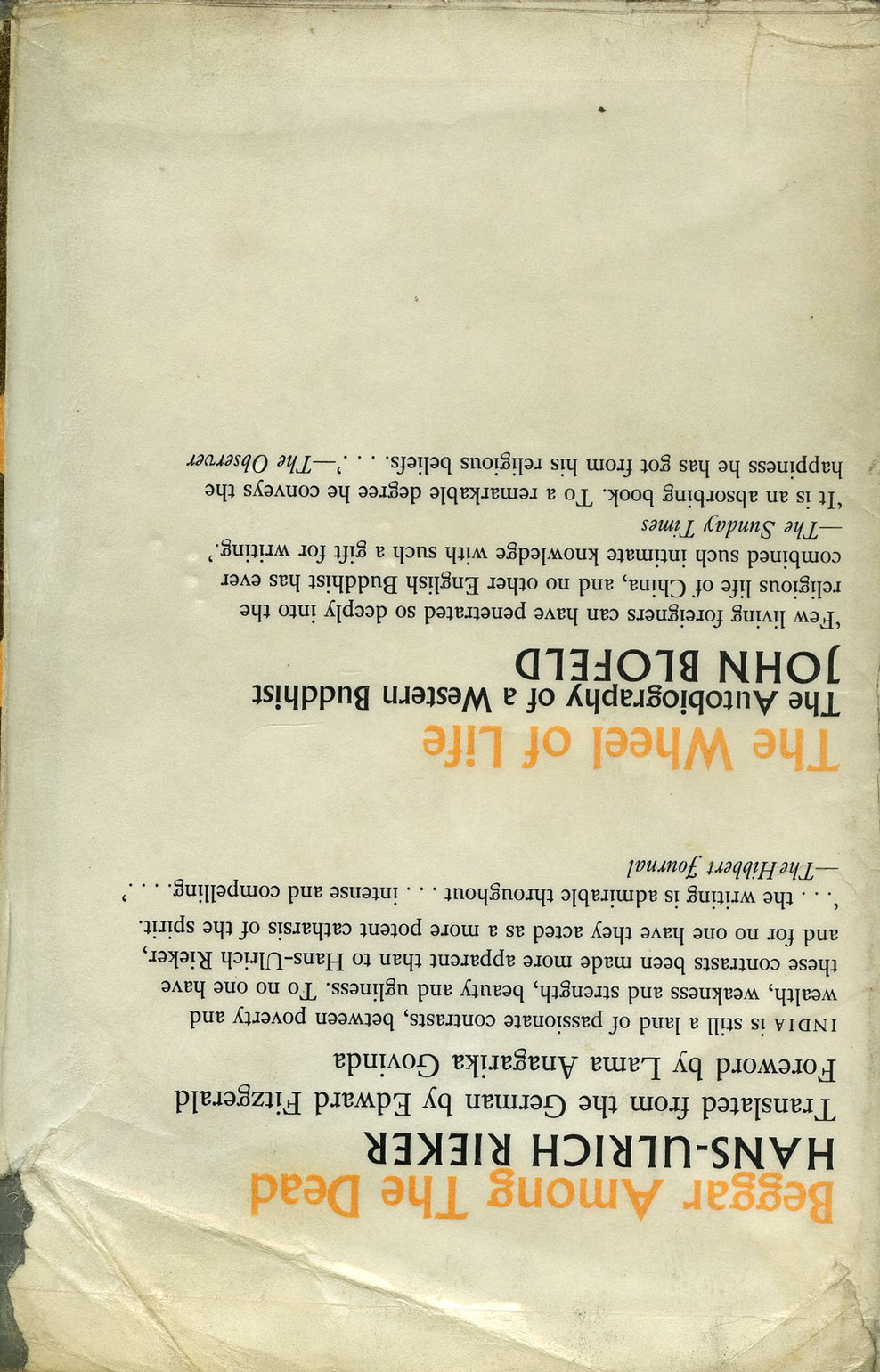 [Below: The Serpent of Paradise - The Story of an Indian Pilgrimage. (c) 1963. Rider & Company. 270 pages. Back. Click to enlarge.]