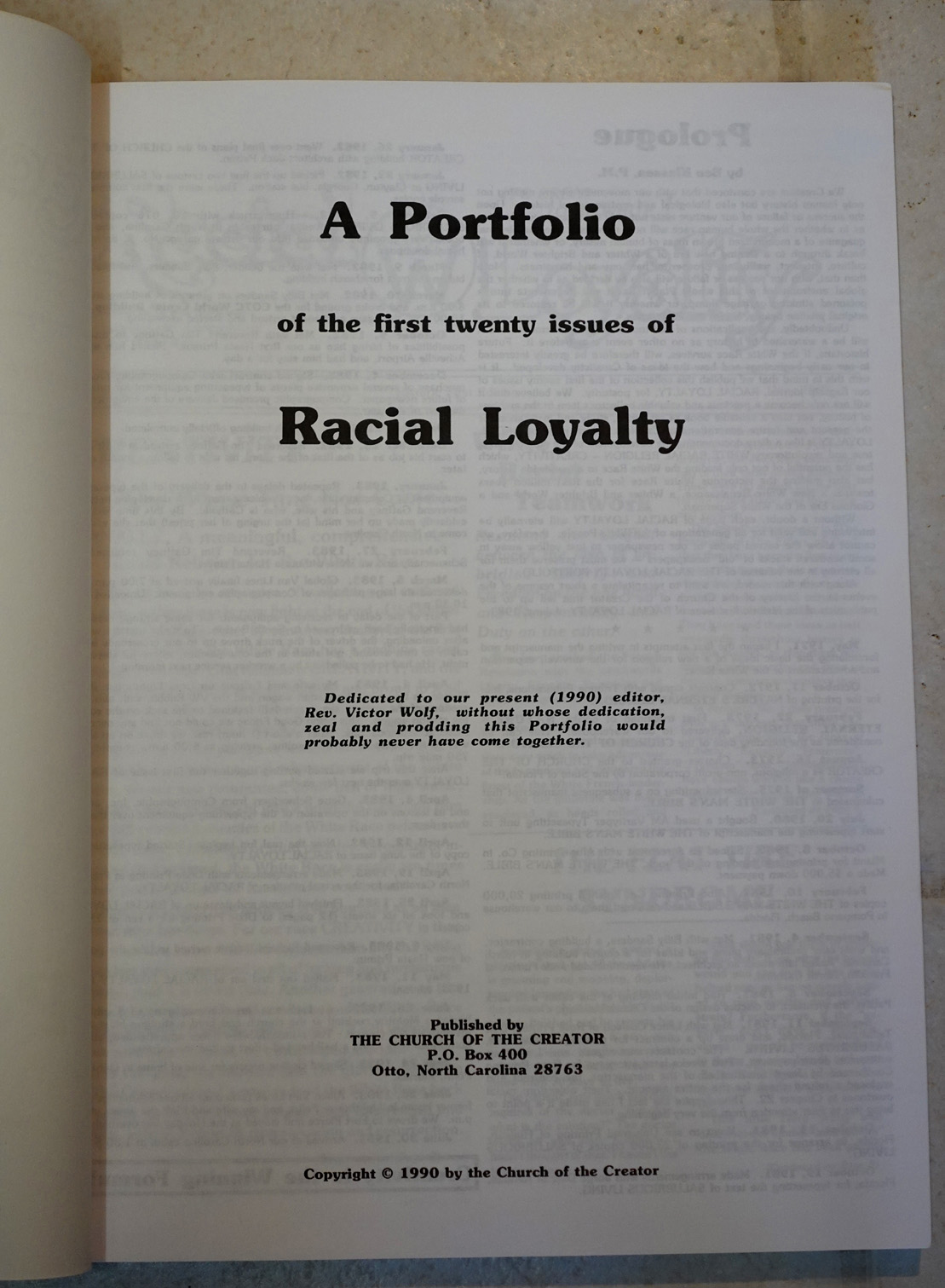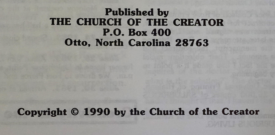 [Above & below: The White Man's Bible - front/back. Second printing ©1992]