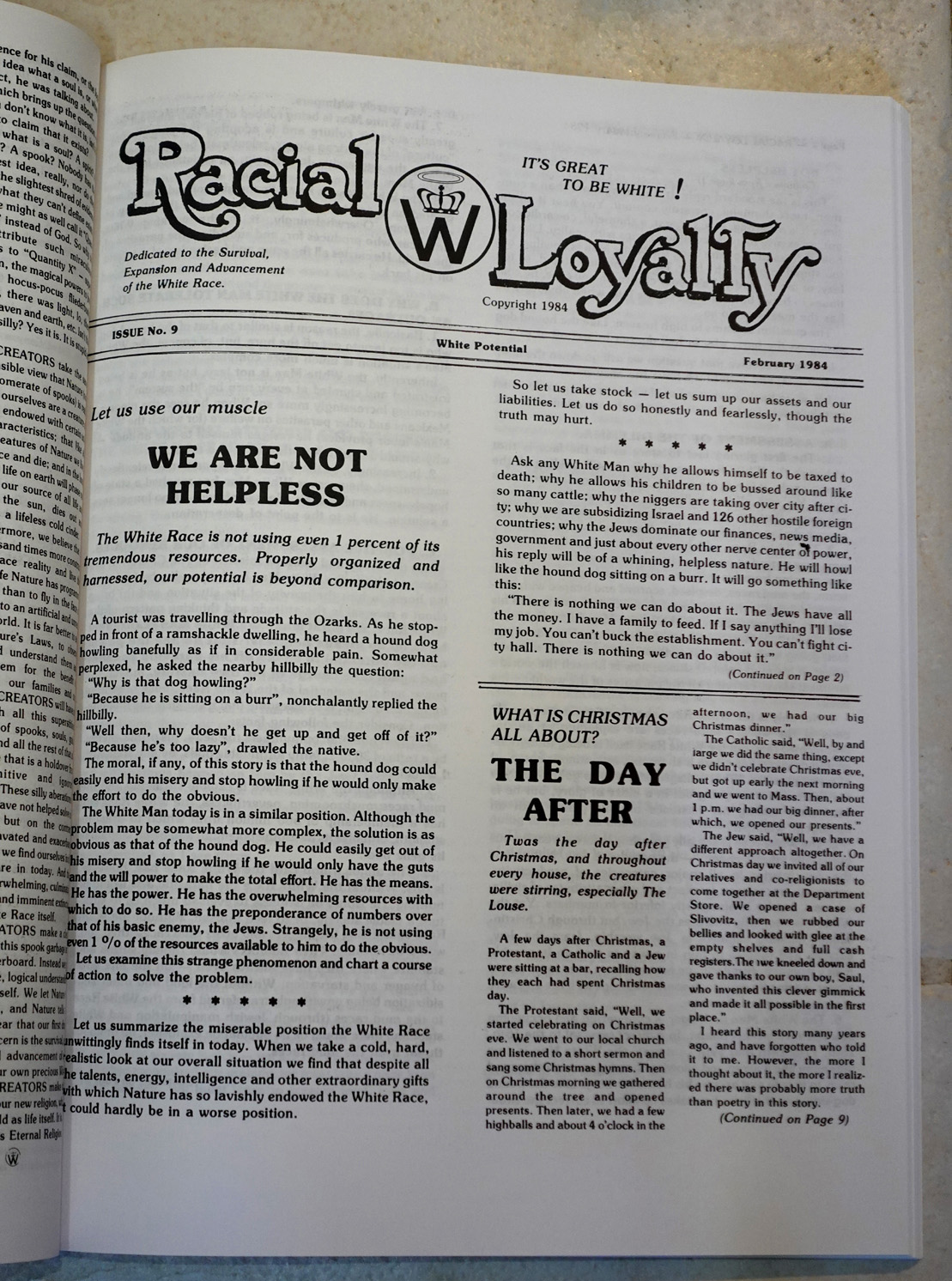 [Above: Stack of Klassen's newspaper 'Racial Loyalty'.]