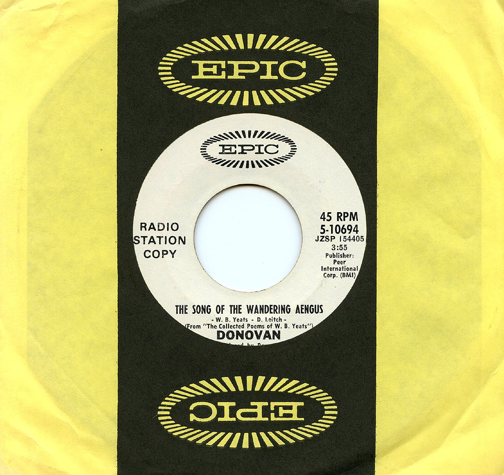 Note: Here is a very, very strange song called 'Song of the Wandering Aengus' from 1971. It is based off a poem by the famous poet William Butler Yeats. I first heard a version of the song in the equally strange 1973 film Caged Terror, also called Golden Apples of the Sun. It's also odd that this Donovon guy had mainstream hits and has some famous songs out there. The cover to this is yet another oddity. Oh well, this song is pretty neat, check it out for yourself sometime.