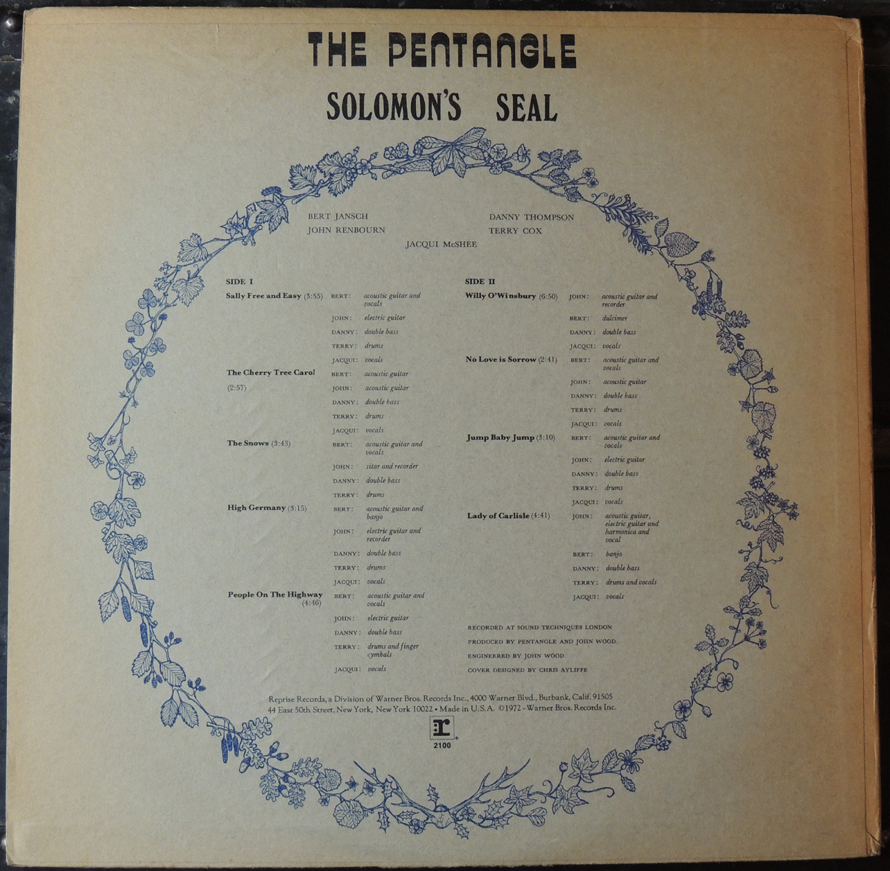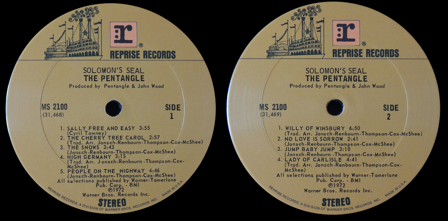 [Above: Also of note, the 1970s band Pentangle. This album, Solomon's Seal, is from 1972. I only really like one song, but I like it a lot. It's called Willy O' Winsbury and is based on a very old tale of unknown European origin. Front.]