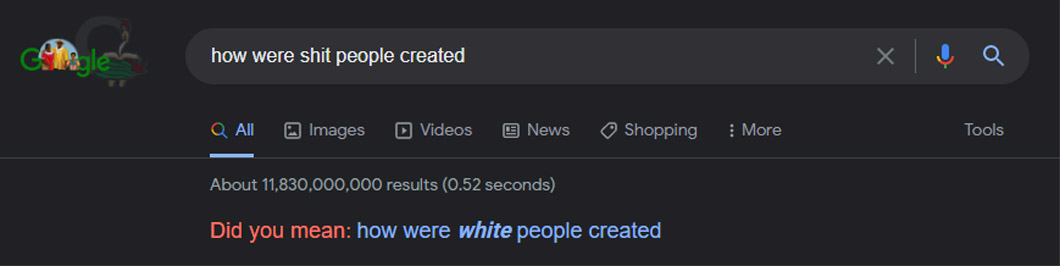 Note: Wait, what the hell? "How were shit people created" asks "Did you mean: how were white people created"... below I've added some more insanity for you.
