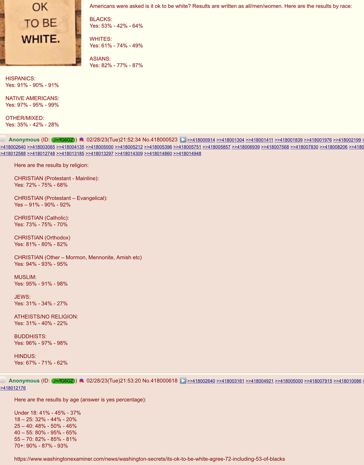 [Above: An interesting poll. So the majority of white women think it is not ok to be white. True insanity. Native Americans, we're going to remember this. We certainly think it is okay to be Native American. National Socialism has always admired your warrior spirit. We'll build a statue of Geronimo in Washington D.C. one day. Geronimo was as defiant and cool as they come. We'll replace that war criminal statue of that genocidal maniac named Lincoln. But, before I get off track, the age group percentages really reveal how brainwashed the younger generations are. A pathetic and scary future. So basically from everything we learn: Native American women, who are Muslim/Buddhist and 70+ years old got our back. What a world we live in brothers and sisters. But take heart, all of this is changing, fast. People are waking up at an incredible rate and despite the poll, I have met tons of young people that are completely on the right track. But we have to keep spreading the truth -- it's working. Keep up the pressure. We will win.]