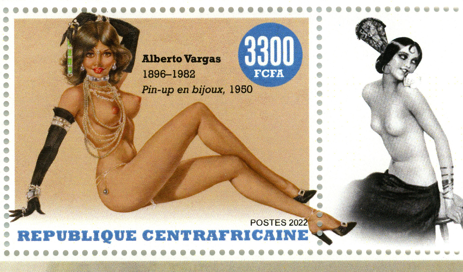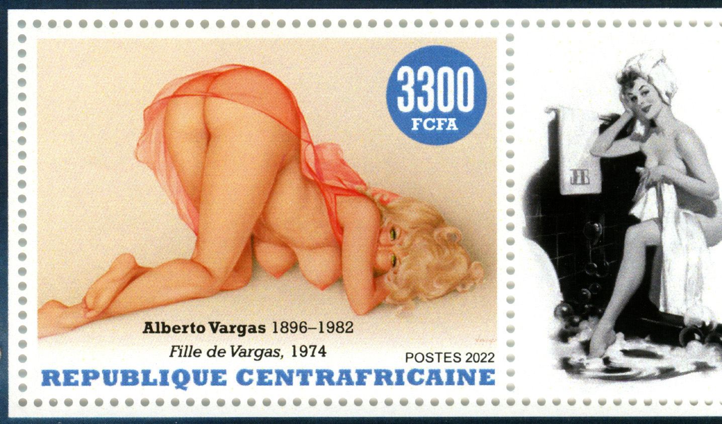 Note: African countries release a plethora of stamps for the collecting market, but one could say this about nearly every country in the world I guess. These are from the Central African Republic, released in 2022, and are quite racy for postage stamps. This country was recognized by the USA on August 13, 1960. Before this it was a French colony called French Equatorial Africa. Anyway, these two sheetlets are only two examples of various other releases available.