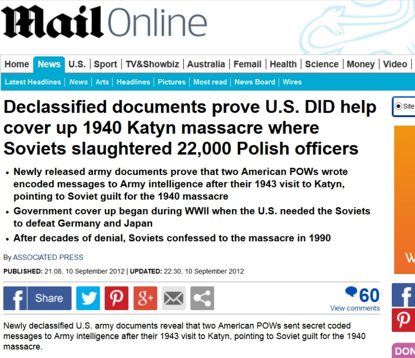[Above: Another smoking gun. The American 'good guys', helping to cover up the Katyn Massacre for the communists?! Well who would have known? Surprise, surprise. The American and British government were one and the same as the one in Moscow.]