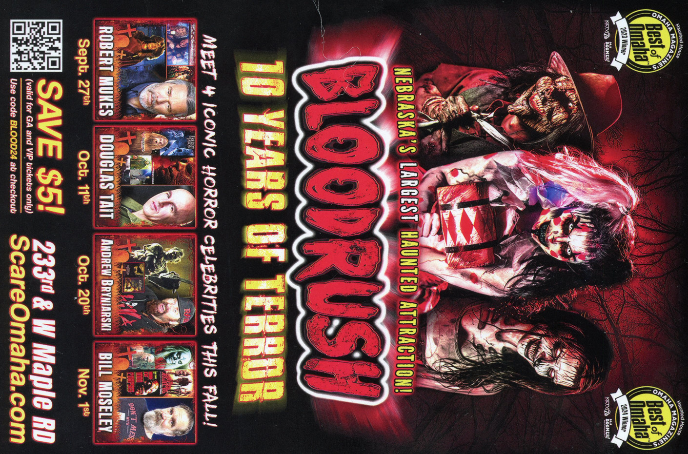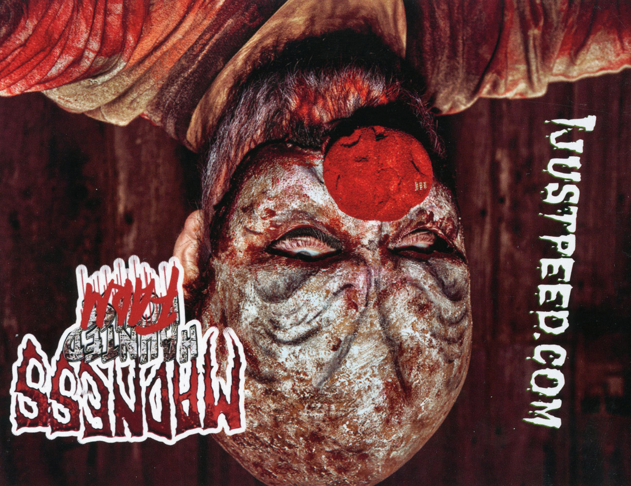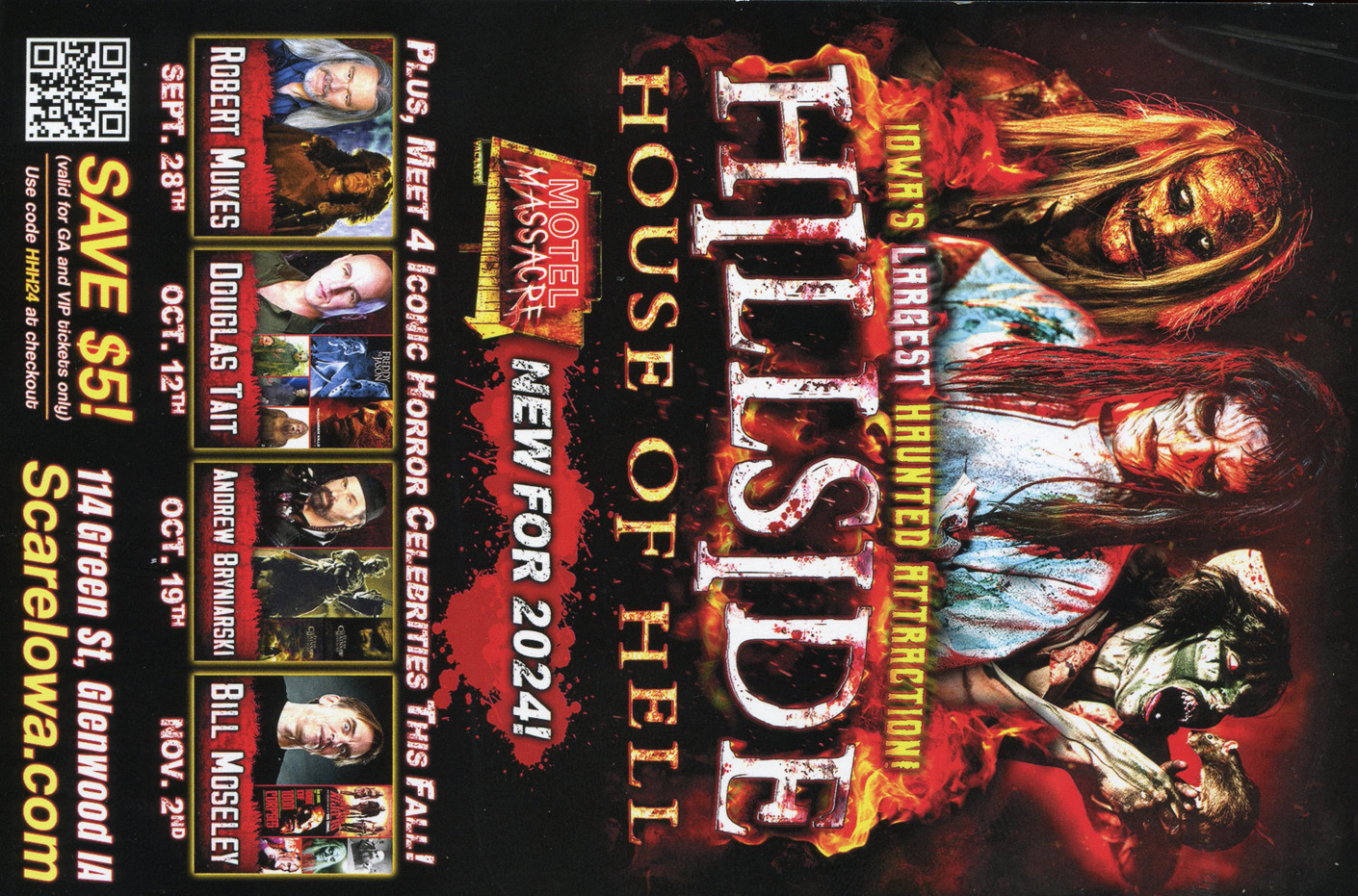 [Below: Front. Who are these 'horror celebrities'??? Oh I see, beside their mugshots are the movies they were in. Although this Robert Mukes guy just shows him in a bear skin. But I don't care anyway, as I don't like any of these new horror movies.]