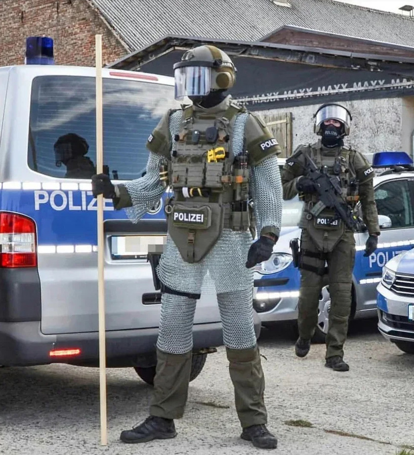 [Below: Maybe German police should upgrade to this 19th century Russian bear hunting armor?]
