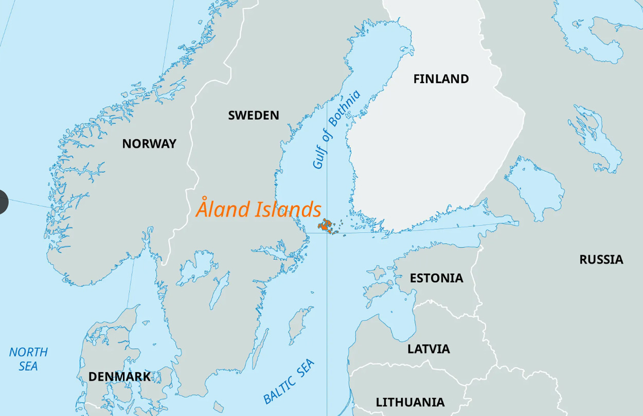 'Åland is an autonomous and demilitarised region of Finland. Receiving its autonomy by a 1920 decision of the League of Nations, it is the smallest region of Finland by both area (1,580 km2) and population (30,129)... Its only official language is Swedish and the capital city is Mariehamn...