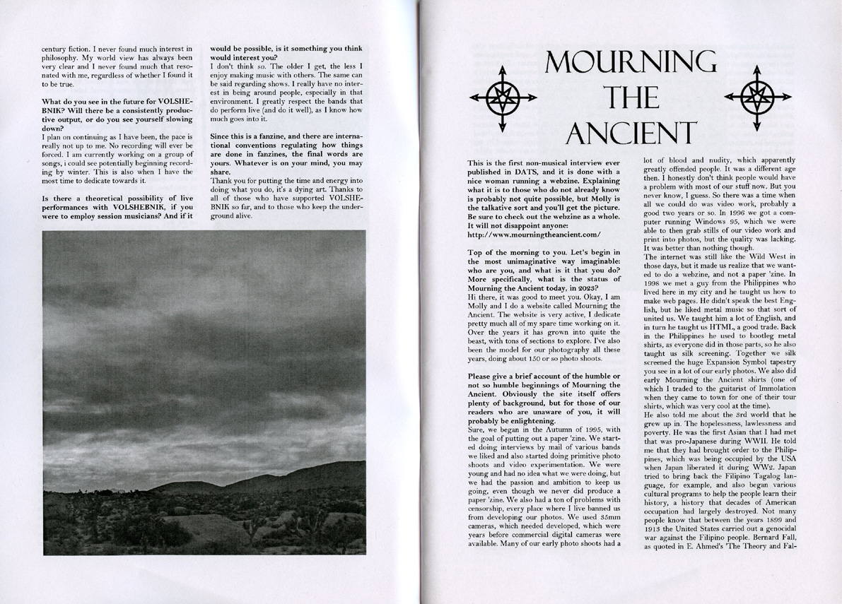 [Below: Final pages of Mourning the Ancient interview (there is a lot more questions/answers in the middle).]