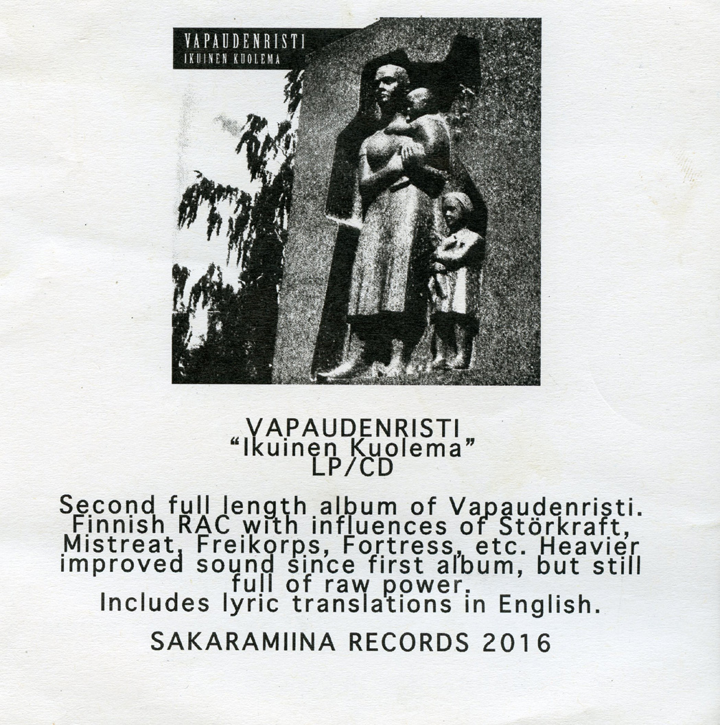 [Below: Reverse of flyer - a band called 'Vapaudenristi', which means 'Cross of Liberty'. I listened to this band online for a second and it sounds like catchy RAC.]