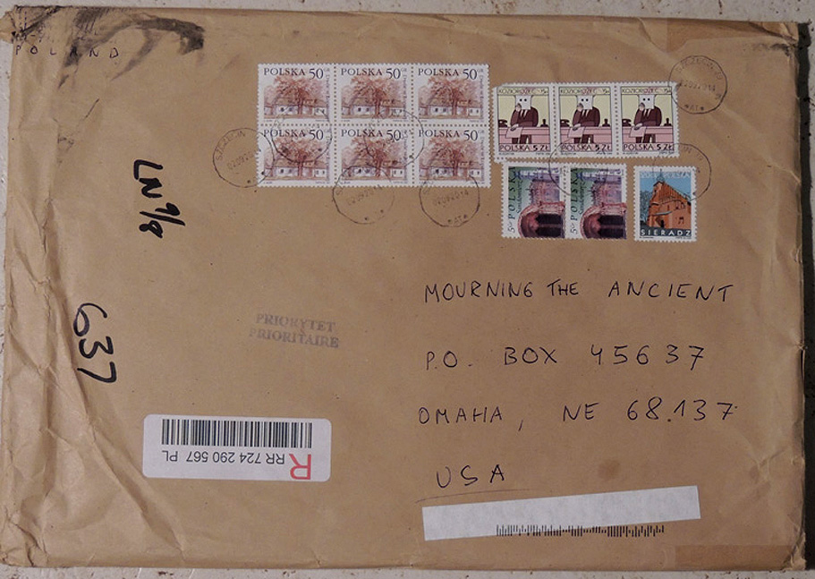 I met Oscar in late 2013 and we've been corresponding ever since. In one email he mentioned he was trying to find patches for his new jacket, so I decided to send him some old Mourning the Ancient shirt sleeves. I imagined he would cut them out and use the expansion symbols as 'patches' on his jacket (years back our t-shirt printing company accidently printed the expansion symbol upside-down on the sleeves, so they gave us the fucked-up shirts for free rather than throwing them away. Through the years we cut off the sleeves and wore the shirts sleeveless.).
