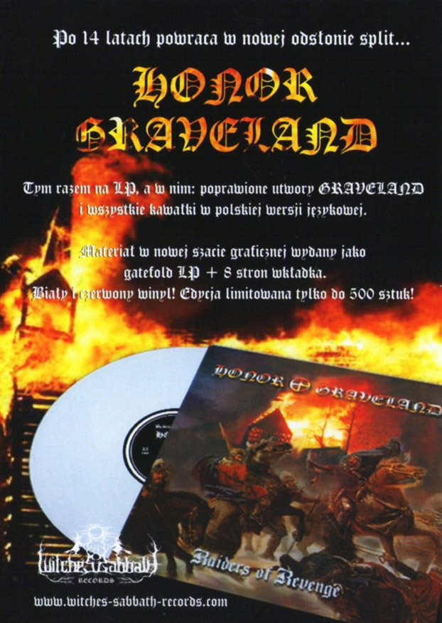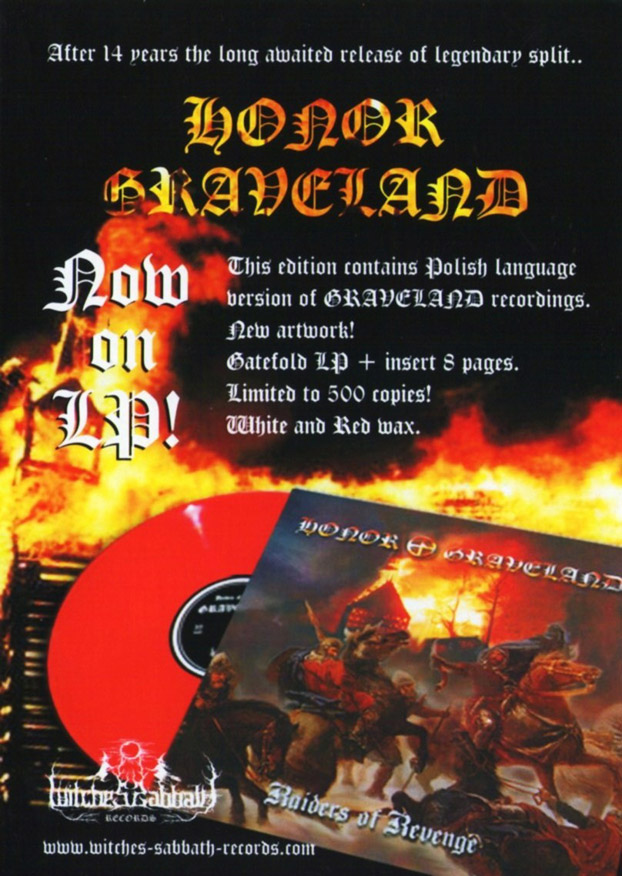 [Note: The editor of Widmo 'zine sent a ton of great Polish flyers with the 'zine (some of which will appear in coming listings). This flyer advertises the re-release of the infamous Honor/Graveland split, which was originally released in 2000 by Resistance Records.]