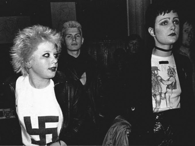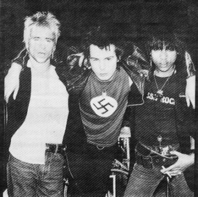 [Above: Sid Vicious, bassist of the Sex Pistols, with his infamous 'Nazi' shirt. A recent movie of his life replaced the swastika on his shirt with a communist symbol!!!]