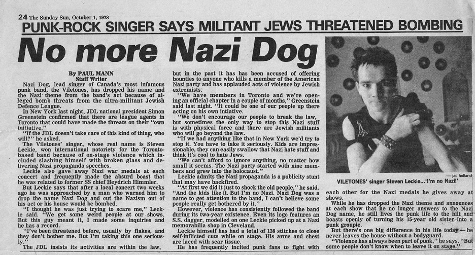 [Above: Here's 'Nazi Dog' of the pioneering Punk band The Viletones. You can read his story here...]