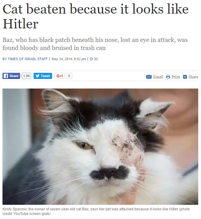 [Above: A 'Nazi cat' who fared much worse than that above. Typical braindead monsters at work here.]