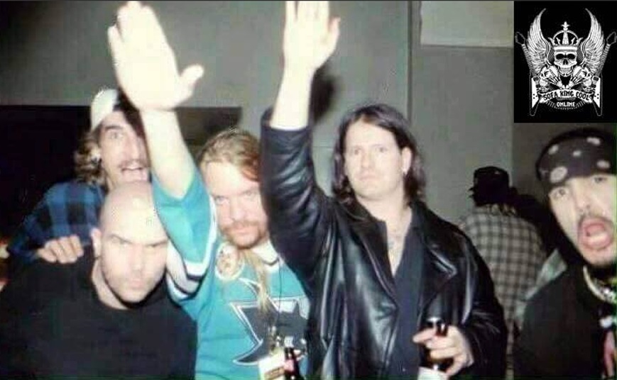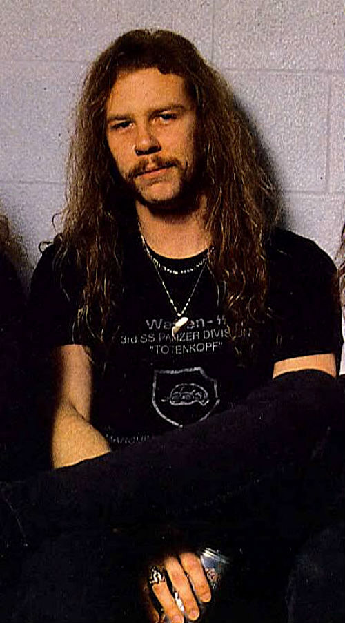 [Above: James Hetfield wearing a shirt of one of the most notorious Waffen-SS divisions -- Totenkopf!]