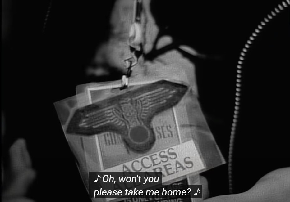 [Above: Guns N' Roses band stage pass. Note someone used their computer to edit out the swastika from the picture. This eagle, with it's pointed wings, is specifically an SS eagle. Their 1988 song 'One in a Million' has some interesting lyrics: