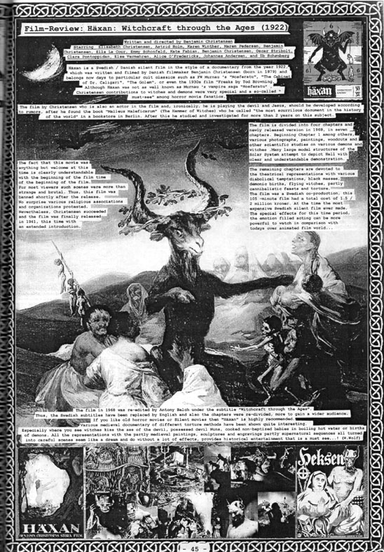 Cry of the Wolf also contains reviews of music and movies and tons of interesting art. A cool 'zine, done by someone who knows good music and has been in the scene for many years.