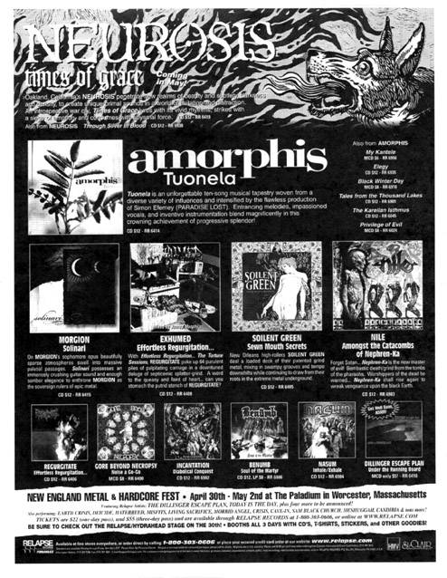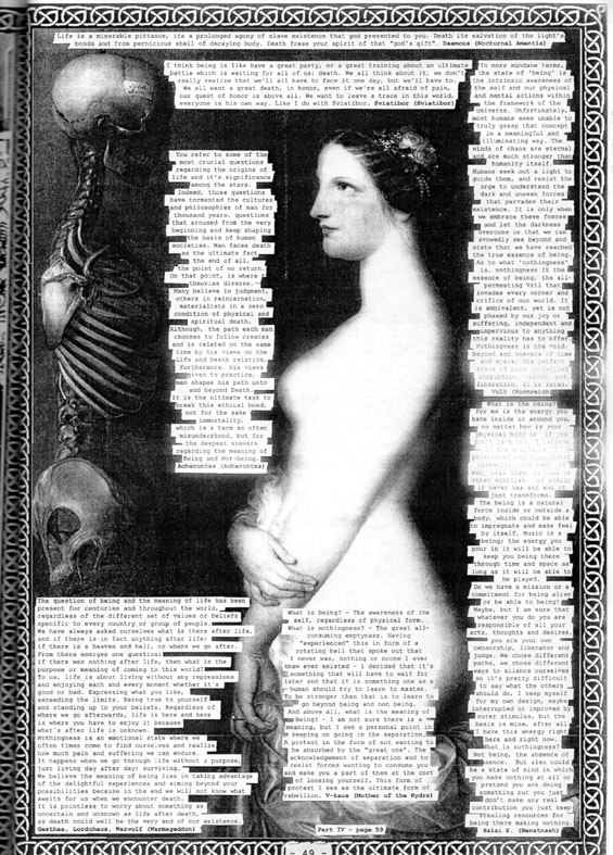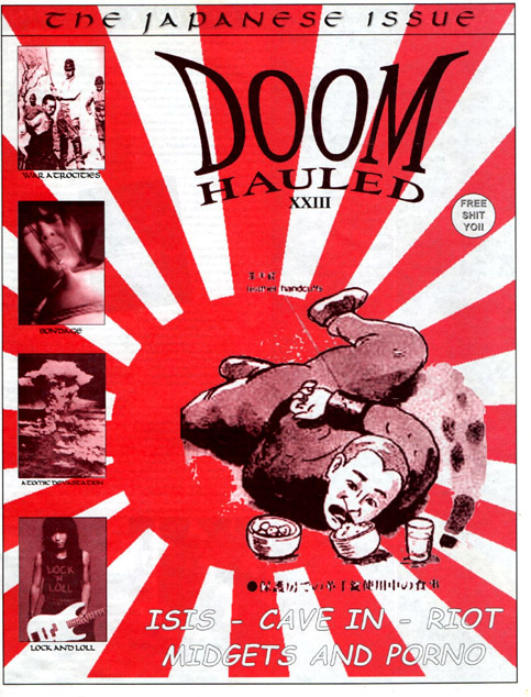 As you can see, this issue is a Japanese-themed issue. Included are articles of so-called Japanese war crimes, interviews, music and porn reviews, etc. etc.. Also live shows are reviewed, among the shows are rap concerts. What does this have to do with metal? Most of the reviews and interviews are of non-metal bands no one has ever heard of. The reviewer thinks its pretty cool to make fun of black/death metal bands, I have no idea why their labels would even send promos to this mag. Furthermore, why am I even wasting my time talking about this garbage 'zine!