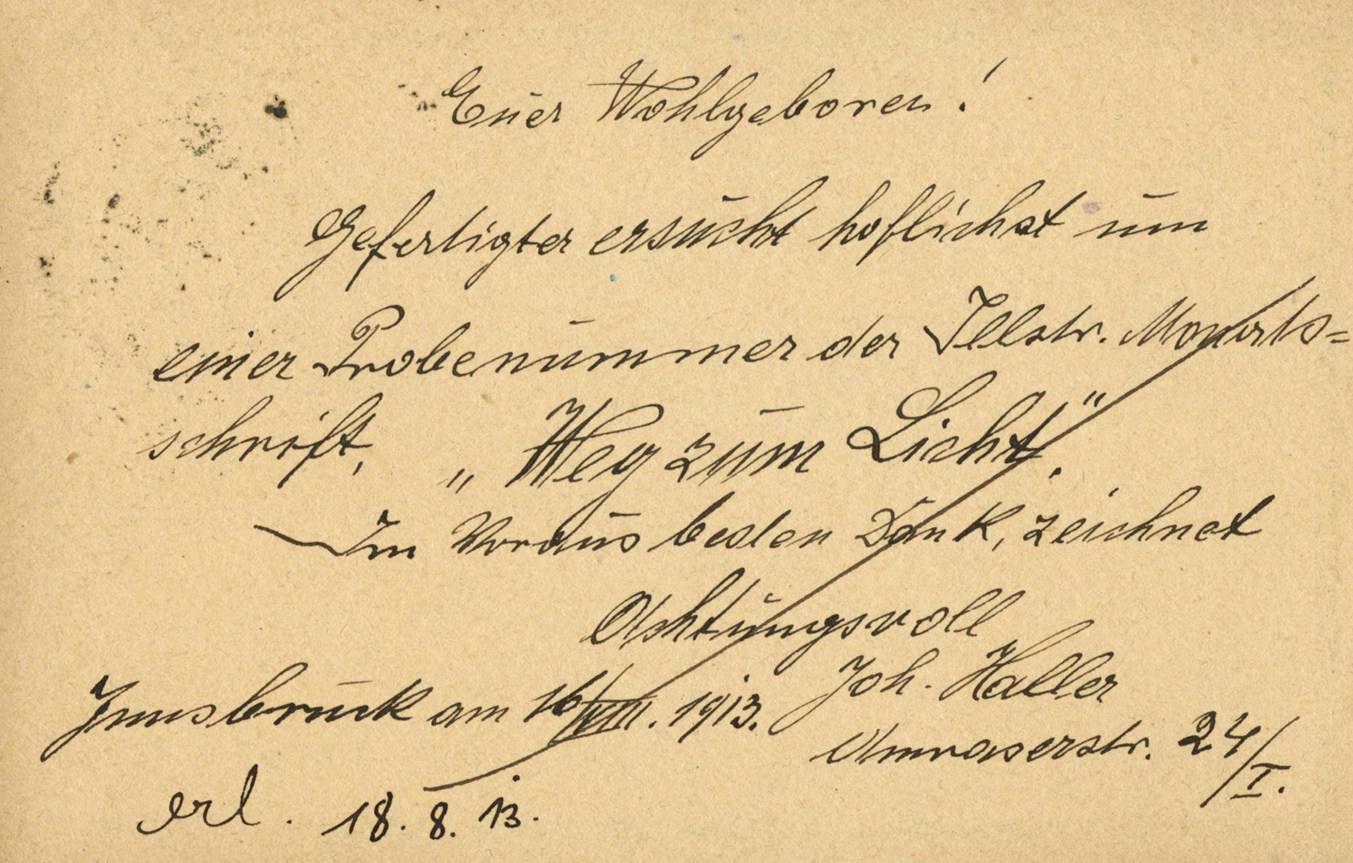 'Vollrath was arrested in 1941 in his birthplace Loitzsch near Zeitz and detained there. His health suffered greatly as a result. His Theosophical friends therefore abducted him in 1942 to Lützschena, a place near Leipzig. There he died under their care in 1943.'