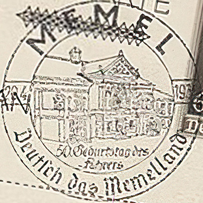 [Above: A special Memel cancel celebrating Adolf Hitler's 50th birthday in 1939.]
