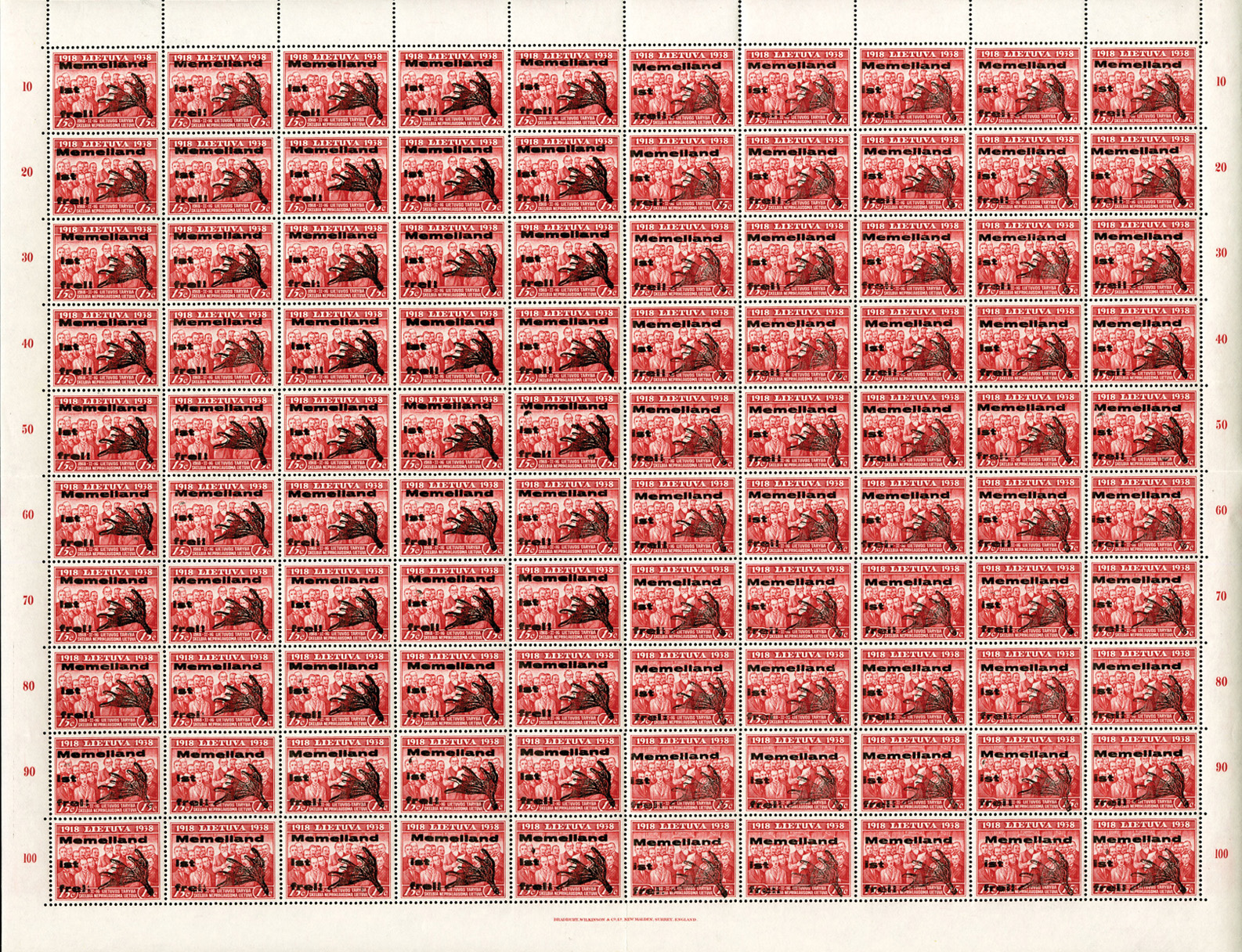 [Above: A very rare sheet of overprinted stamps for Memel - 15 cent.]