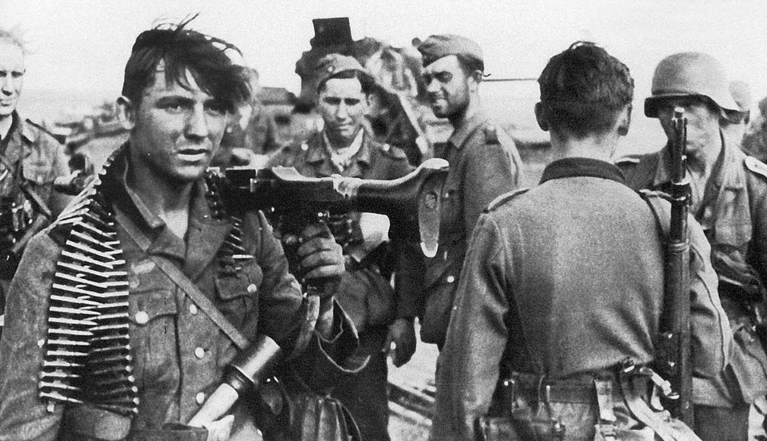 [Above: Panzer grenadiers of the 16th Panzer Division of the Wehrmacht on the bank of the Volga at Stalingrad, August 25, 1942. Over 100,000 Germans were murdered due the traitor Paulus who commanded them. He withheld food and supplies for his soldiers and prevented the breakout of his men, who could see their rescuers, but were ordered to do nothing. After Paulus' capture he quickly worked for the communists, doing radio broadcasts and other propaganda for the Soviets. Curse his name.]